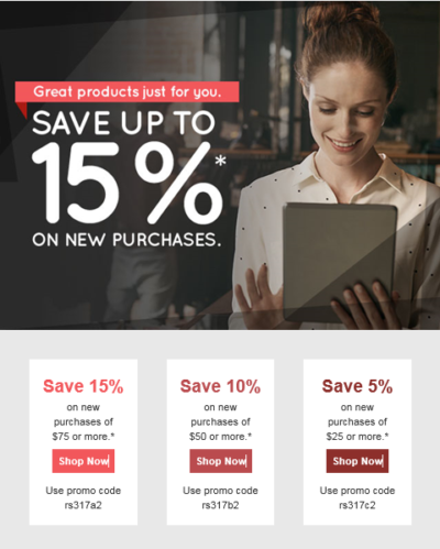 Save upto 15% on all new purchases of $80 or more. Great products just for you. Hurry before the offer expires.