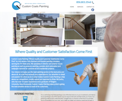 The Website Design team of South Jersey Techies has been constantly working on developing great looking websites using the latest web technologies. The most recent website developed by our team is for a painting company, serving the Tri-State area, Custom Coats Painting.