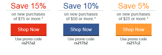 *Some limitations apply. Applicable to new purchases only. Enter promo code into shopping cart to see full details. No Minimum required. Offer expires Wednesday, May 17, 2017 at midnight (Mountain Time).