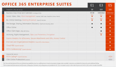 The Office 365 E5 SKU will include Skype for Business (Lync) with support for features including Cloud PBX and Meeting Broadcast; new analytics features, like Power BI Pro and Delve Organizational Analytics; and new advanced security features, such as eDiscovery, Customer Lockbox, and Safe Attachments.