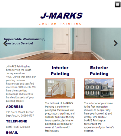 The Web Design team of South Jersey Techies has been constantly working on developing the best websites including easy mobile approach and the latest website developed by the team is J-Marks Painting. J-Marks Painting has been serving and satisfying more than 3000 clients in the South Jersey area since 1995. They have the expertise, knowledge and talent to make your dream project come true.